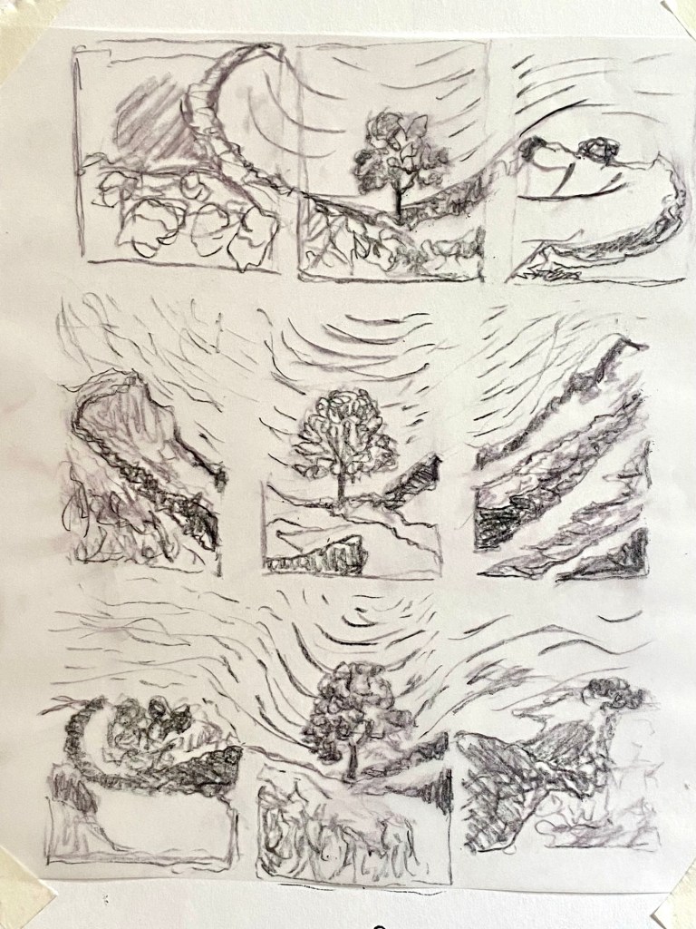 Experimentation — playing with how the wall, sky, and land might interact in carved form.