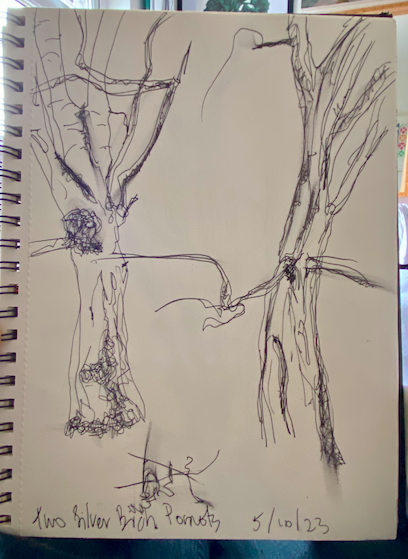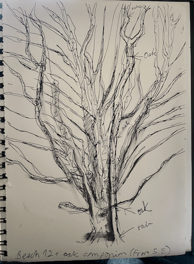 After seven years of life drawing, I have turned my attention to trees, starting with sketches of veteran trees in Markstakes Common. This project, which began as an effort to identify trees recognised in a 2010/11 survey, evolved into large pen-and-ink illustrations and prints.